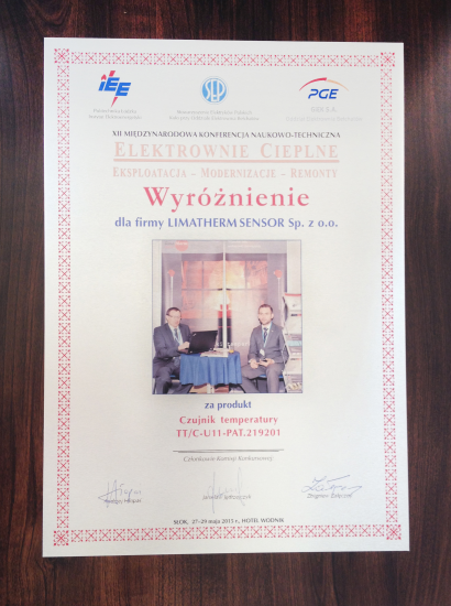 Na potwierdzenie innowacyjności i ciągłego rozwoju firmy Limatherm Sensor otrzymaliśmy wyróżnienie za produkt „wysokotemperaturowy termoelektryczny czujnik temperatury”. Czujnik wykazuje odporność pomiarową na  temperaturę do 2300°C. Konstrukcja czujnika oparta jest o termoelement wolframowo-renowy z zastosowaniem osłony molibdenowej.