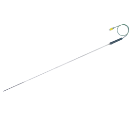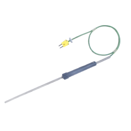 Czujnik służy do chwilowego pomiaru temperatury cieczy, mas półpłynnych lub materiałów sypkich. Wynik pomiaru jest odczytywany na przenośnych miernikach temperatury przeznaczonych do współpracy z czujnikami termoelektrycznymi. temperatura max. 800 °Csensor Fe-CuNi /J/, NiCr-Ni /K/