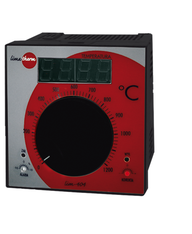 Regulatory LIM 404 to proste i niezawodne regulatory analogowe. Regulator LIM 404 posiada wyświetlacz LCD, który wskazuje wartość mierzoną. Zmiana wartości zadanej odbywa się za pomocą gałki. Regulator posiada wejście dedykowane pod termoparę J, K lub Pt100. Wyjście przekaźnikowe 10A pozwala na sterowanie niewielkich obciążeń bez stosowania dodatkowych styczników. Regulator ma do wyboru regulację ON/OFF z histerezą lub regulacje proporcjonalną P.