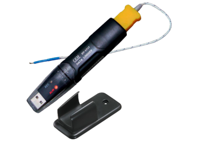 DT-171T to przenośny rejestrator temperatury z zewnętrzną sondą pomiarową stosowany w przemyśle spożywczym, farmaceutycznym, laboratoryjnym, transporcie chłodniczym, oraz wszędzie tam gdzie wymagana jest rejestracja parametrów otoczenia w systemach jakości. Rejestrator posiada pamięć wewnętrzną 32 k, złącze USB do komunikacji z PC i diody REC i ALM do informowania użytkownika o stanie urządzenia. W zestawie znajduje się solidny uchwyt oraz oprogramowanie do analizy danych pomiarowych.
