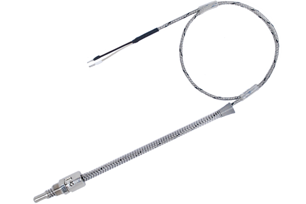 Standardowo czujnik wykonany jest z przewodem w izolacji z włókna szklanego osłoniętego oplotem metalowym.